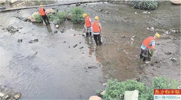事发次日,南都记者走访现场发现仍有死鱼从上游冲下,亦有网友称下游的观澜河也发现死鱼。