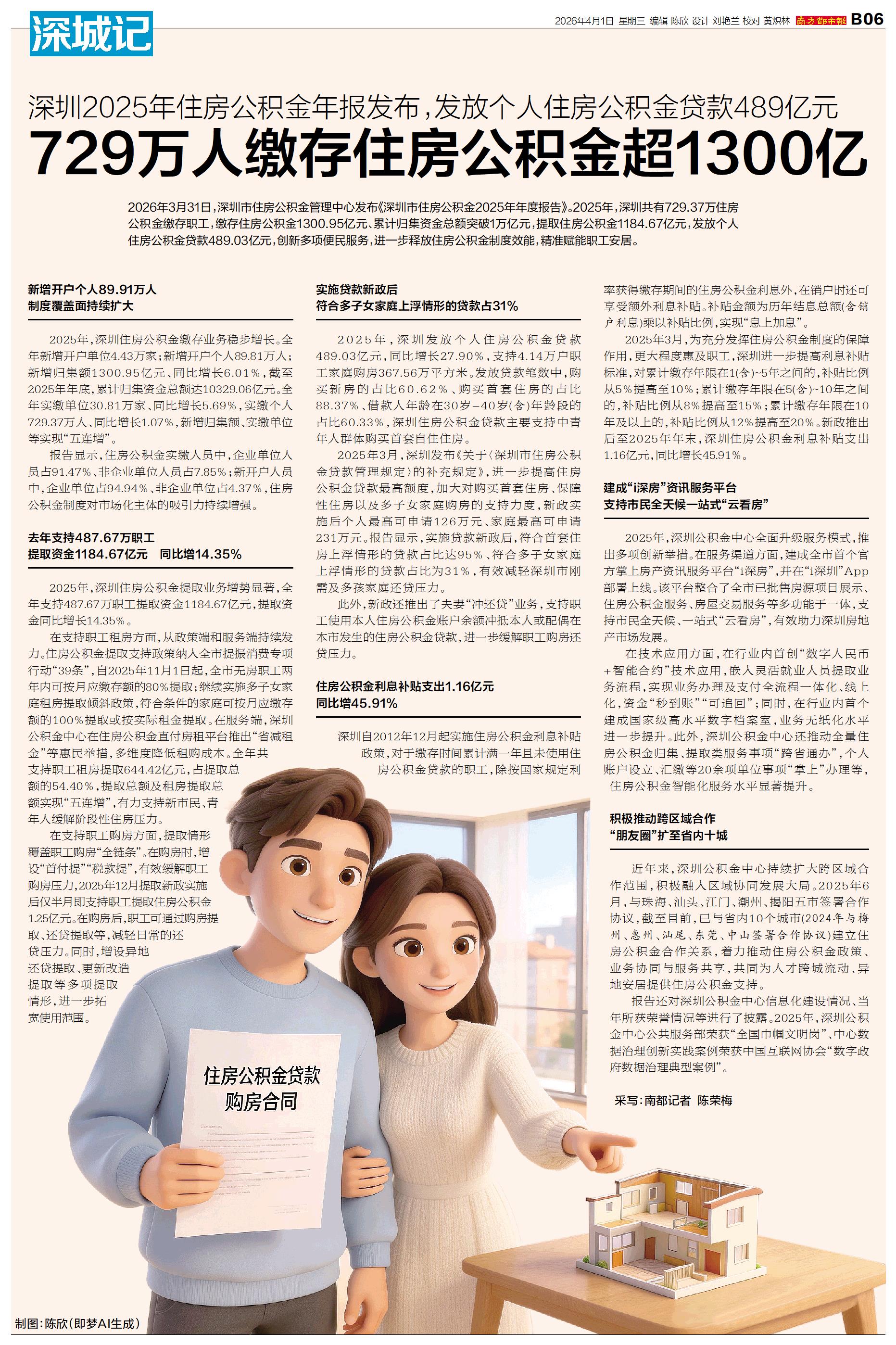制图:陈欣(即梦AI生成) 2026年3月31日,深圳市住房公积金管理中心发布《深圳市住房公积金2025年年度报告》。2025年,深圳共有729.37万住房公积金缴存职