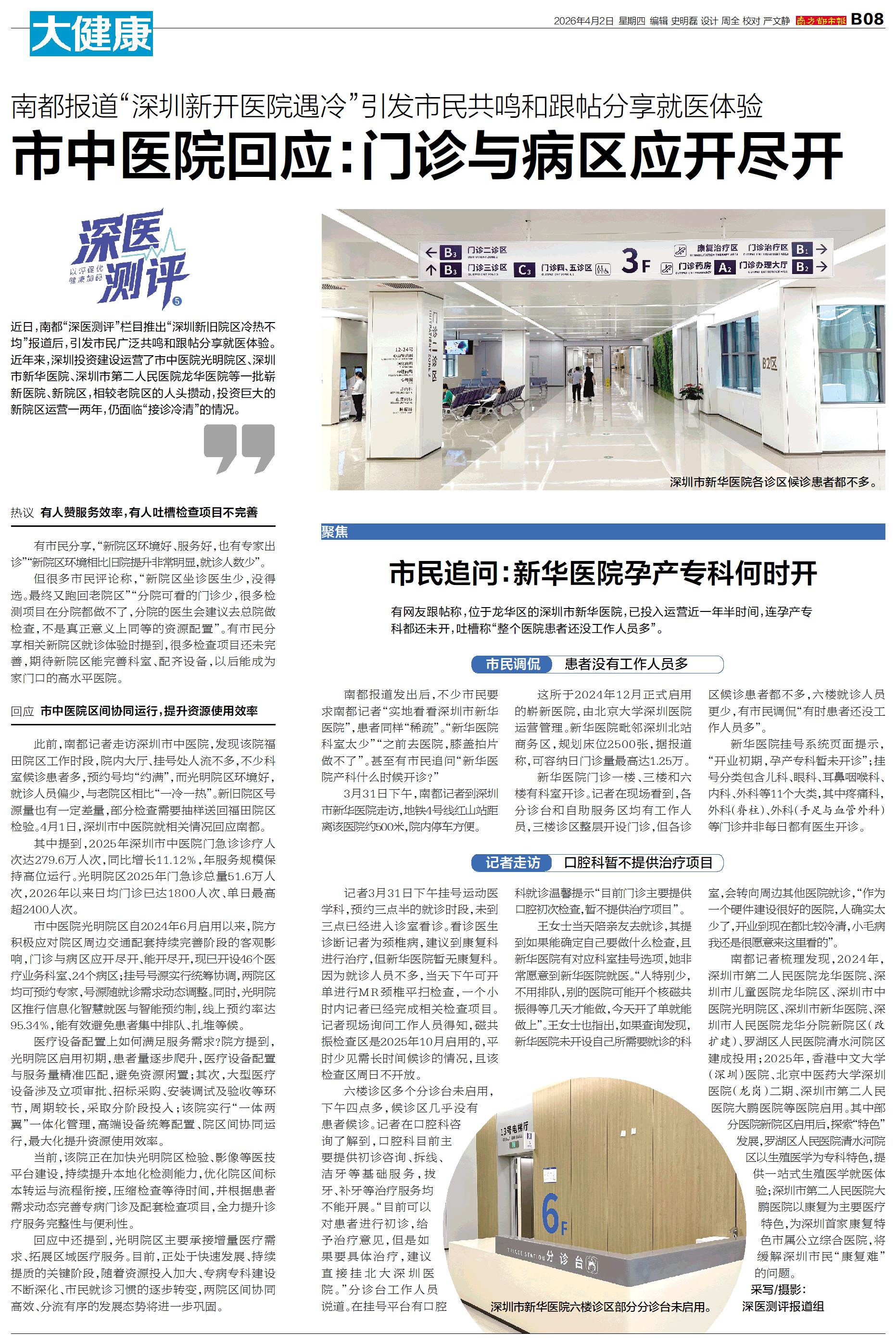 近日,南都“深医测评”栏目推出“深圳新旧院区冷热不均”报道后,引发市民广泛共鸣和跟帖分享就医体验。近年来,深圳投资建设运营了市中医院光明院区、深圳市新华医院、深圳市第二人民医院龙华医院等一批崭新医