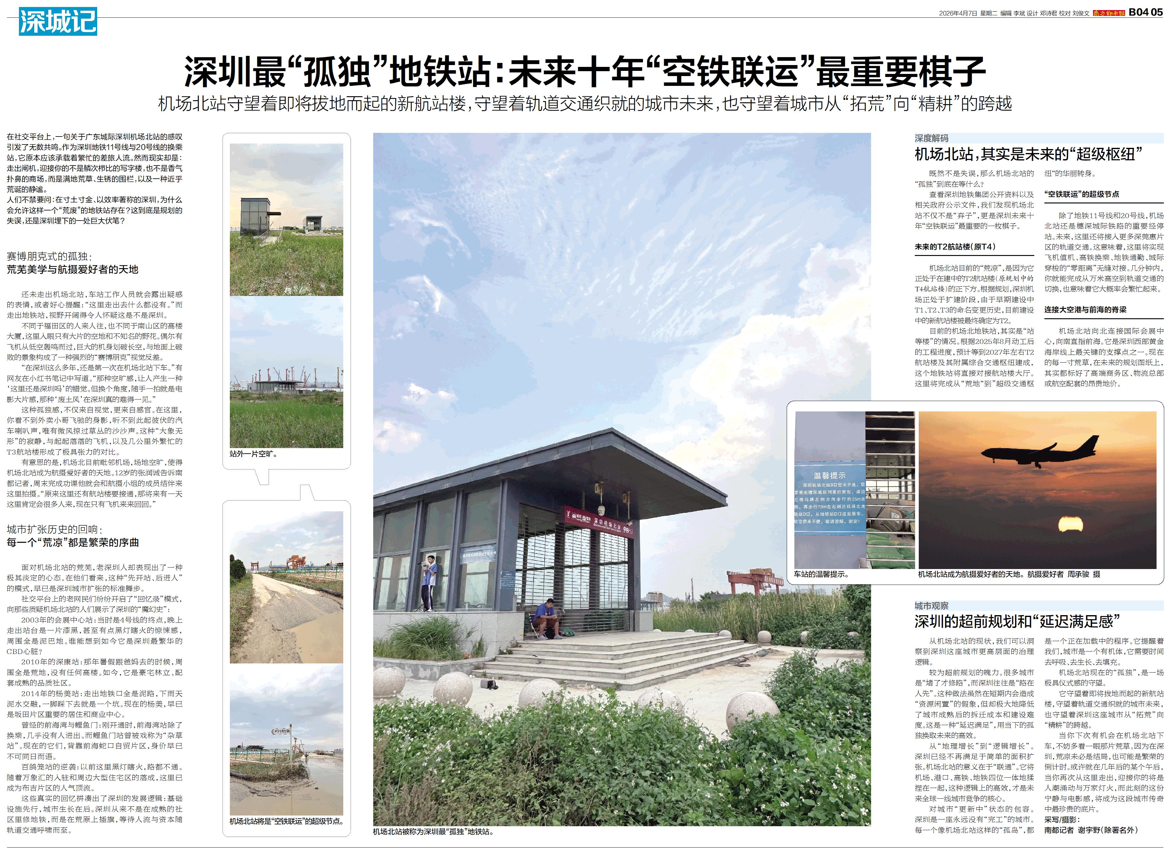 “在深圳这么多年,还是第一次在机场北站下车。”有网友在小红书笔记中写道。“那种空旷感,让人产生一种‘这里还是深圳吗’的错觉。但换个角度,随手一拍就是电影大片感,那种‘废土风’在深圳真的难得一见。”
