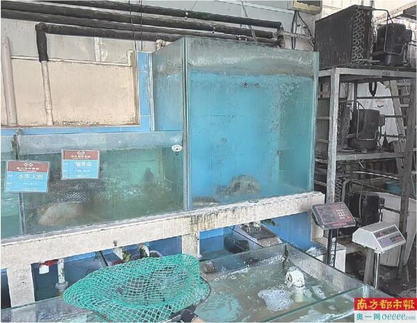 暂养海鲜水产的水族箱以及增压泵相关设备。