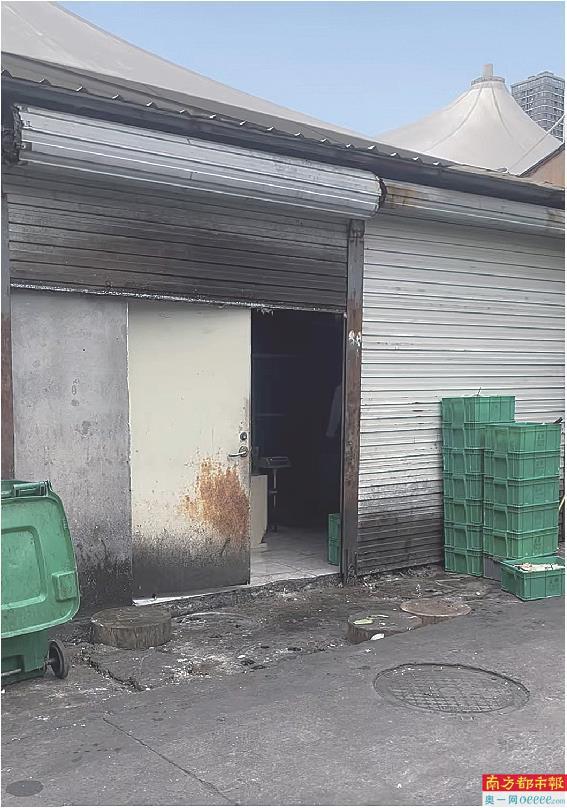 涉事餐厅门口,市民反映的铁皮房在其西侧。