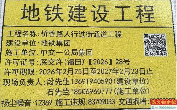 多年修不通,工程到底卡在了哪里?公开资料显示,该项目全称为“侨香路人行过街通道工程”,自2020年6月25日便已进场施工。一项看似常规的过街通道工程,为何会陷入长达近6年的“拉锯战”?