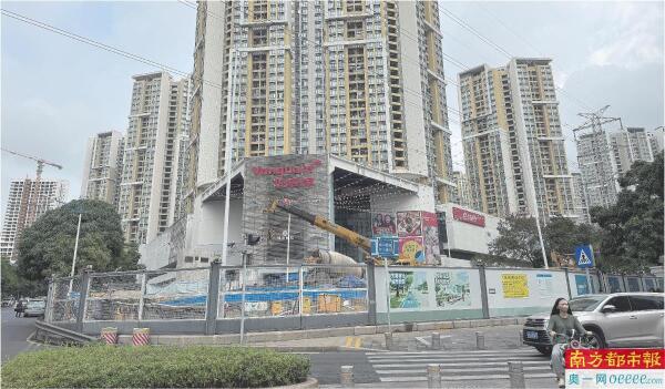在华润万家一侧,拟建的地铁口被围挡单独隔离,内部为正在施工的现场。