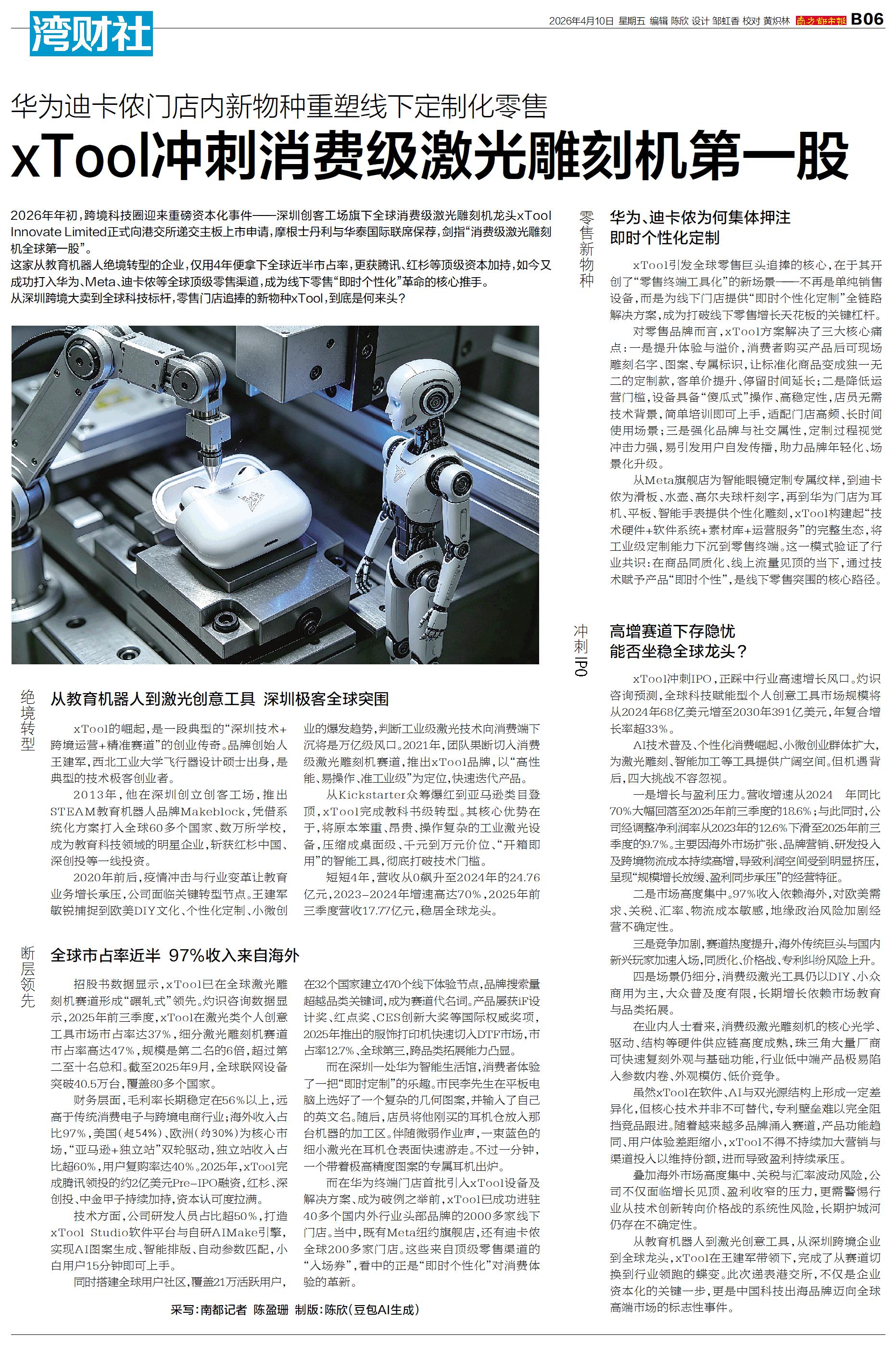 2026年年初,跨境科技圈迎来重磅资本化事件——深圳创客工场旗下全球消费级激光雕刻机龙头xTool Innovate Limited正式向港交所递交主板上市申请,摩根士丹利与华泰国际联席保荐,剑指