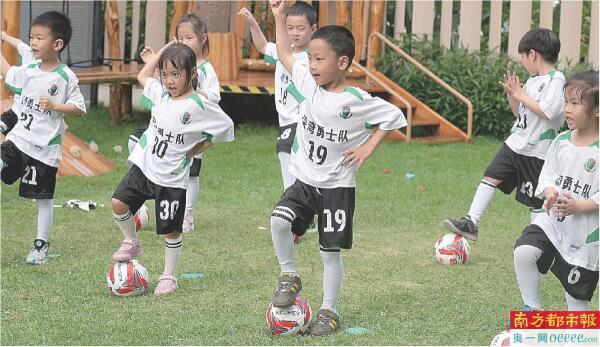 深圳市南山区教育幼儿园深圳湾分部成立5支中班幼儿足球队。