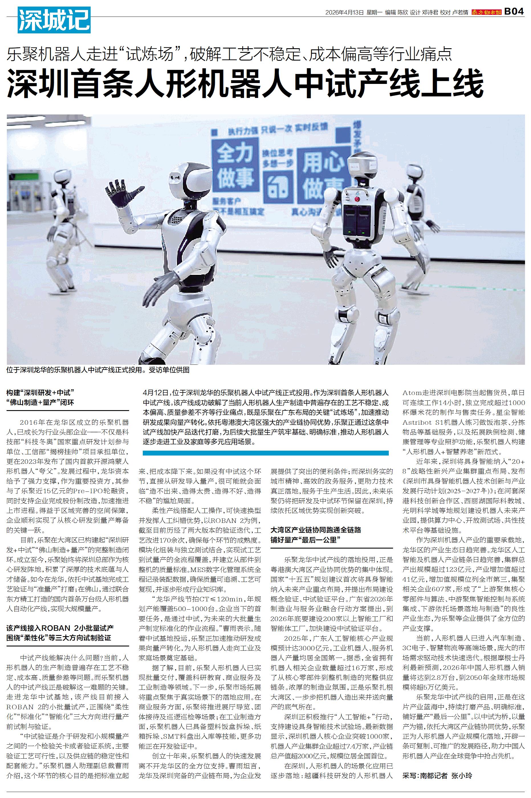 深圳首条人形机器人中试产线上线