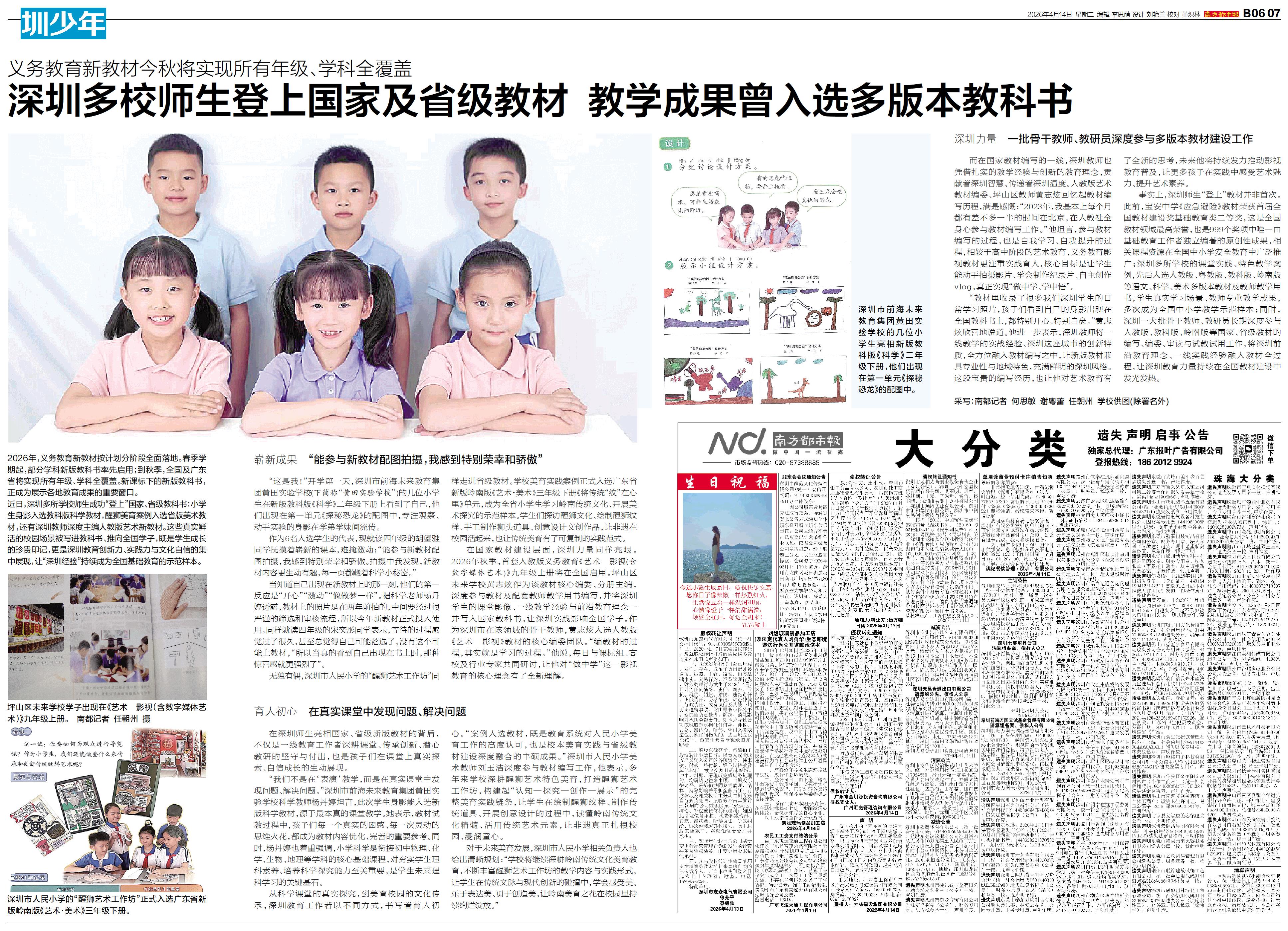 深圳多校师生登上国家及省级教材 教学成果曾入选多版本教科书