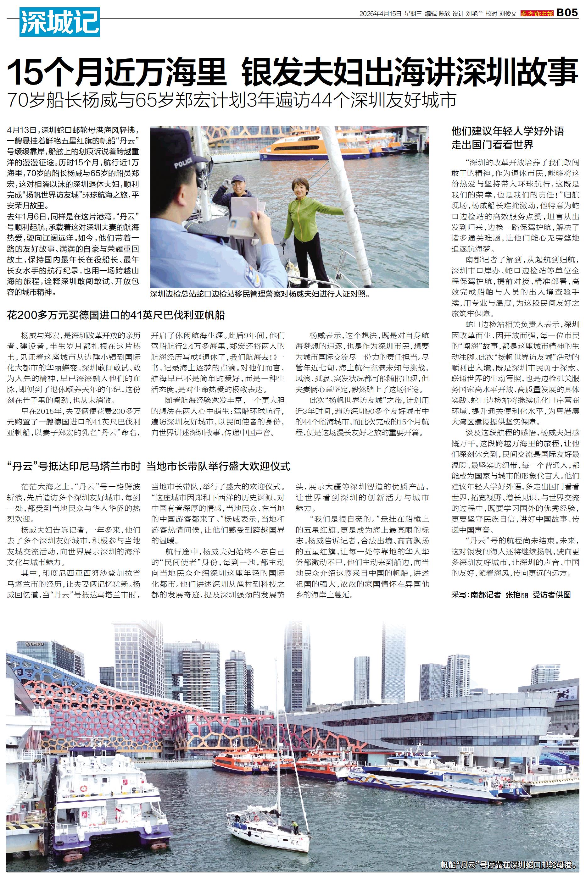 15个月近万海里 银发夫妇出海讲深圳故事