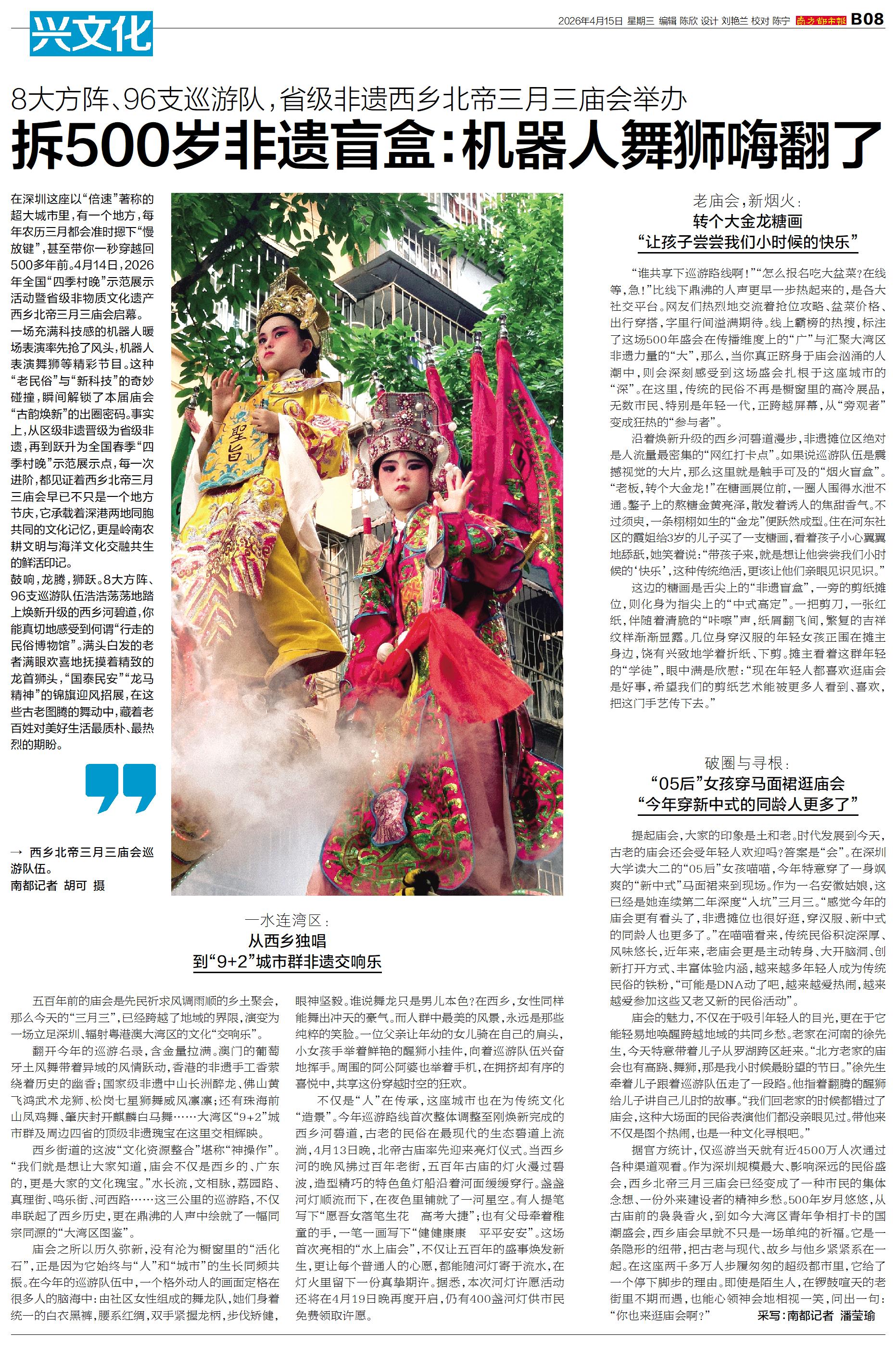 在深圳这座以“倍速”著称的超大城市里,有一个地方,每年农历三月都会准时摁下“慢放键”,甚至带你一秒穿越回500多年前。4月14日,2026年全国“四季村晚”示范展示活动暨省级非物质文化遗产西乡北帝