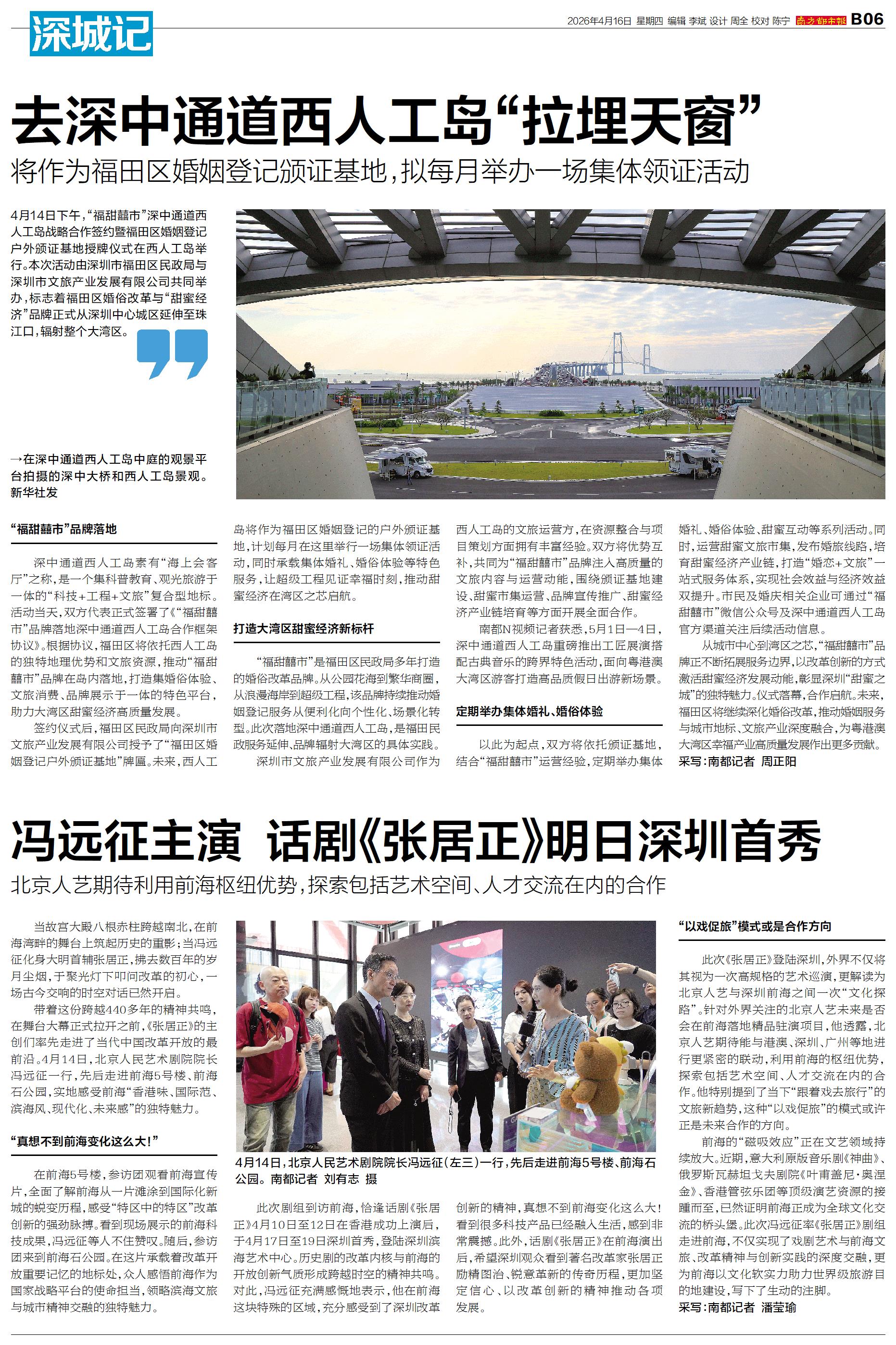 4月14日下午,“福甜囍市”深中通道西人工岛战略合作签约暨福田区婚姻登记户外颁证基地授牌仪式在西人工岛举行。本次活动由深圳市福田区民政局与深圳市文旅产业发展有限公司共同举办,标志着福田区婚俗改革与
