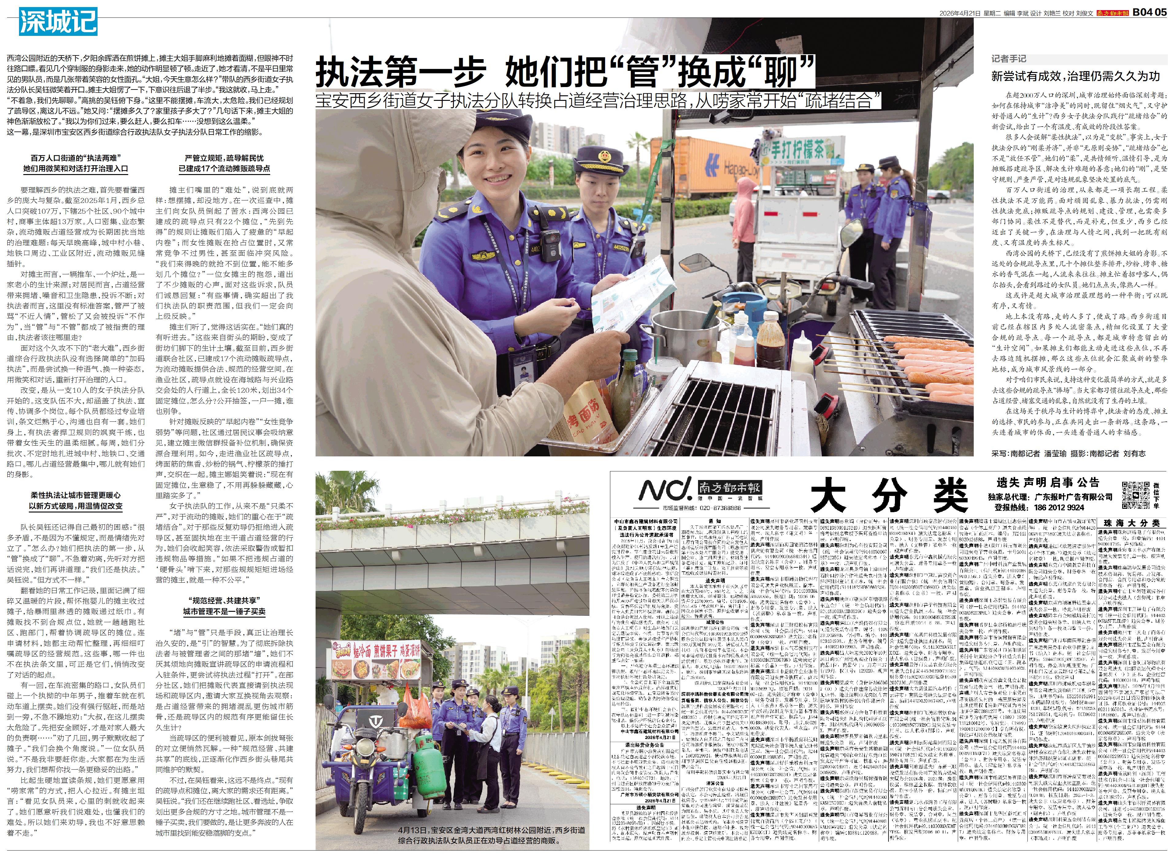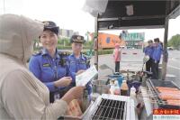 西湾公园附近的天桥下,夕阳余晖洒在煎饼摊上,摊主大姐手脚麻利地摊着面糊,但眼神不时往路口瞟。看见几个穿制服的身影走来,她的动作明显顿了顿。走近了,她才看清,不是平日里常见的男队员,而是几张带着笑容