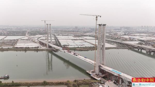 深江铁路广中江特大桥跨鸡鸦水道主桥顺利合龙。 新华社发