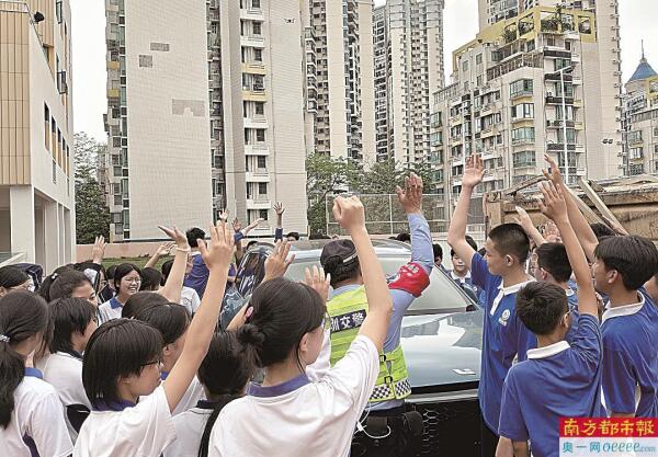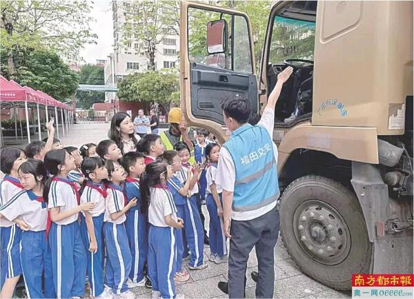 为切实加强辖区中小学生对大型车辆盲区的安全防范意识,预防和减少涉学生交通事故,近日,深圳市公安局交通管理支队福田大队牵头,联合福田区教育局、区9个街道及9所学校,共同开展“盲区不‘盲’,安全‘童’行——泥头车进校园”主题宣教活动,为学生们送上一堂“看得见、摸得着”的交通安全教育课。