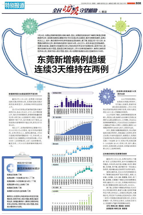 1月24日,东莞出现首例新冠肺炎确诊病例。至此,东莞疫情走势如何?南都记者通过整理数据并分析,发现新增病例主要集中在1月30日至2月4日期间,每天均有新增病例,且有4例及以上;另外,确诊病例中存在多例