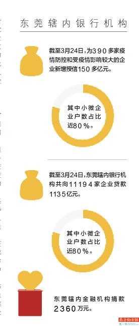 今年以来,东莞辖内银行机构为390多家疫情防控和受疫情影响较大企业新增授信150多亿元,其中小微企业户数占比近80%,为多家企业提供优惠利率及快速审批服务,及时缓解了企业的燃眉之急。截至3月24日,东莞辖内银行机构共向11194家企业贷款1135亿元,加权平均利率4.88%,同比下降了0.57个百分点,其中小微企业户数占比近80%。