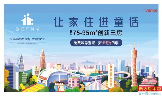 项目亮点:珠江万科城,地处水乡新城片区,毗邻珠江支流,一桥直达广州开发区。项目位于东莞地铁1号线大盛村站旁,无缝接驳广州地铁5号线,快速通达东莞中心区。规划2700户约75-95㎡创新三房,打造万科首个亲子友好型社区,让家住进童话。