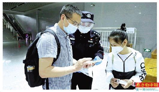 民警刘阳在火车站落实第一道关口的“莞e申报”工作。