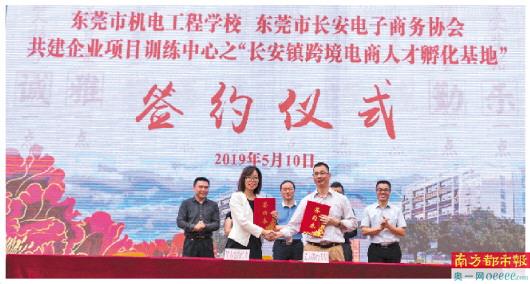 东莞市机电工程学校与长安镇电商协会签约。