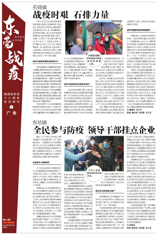 建立“一日一研判”工作机制,开展“党员联户”,实行领导干部“一对一”挂点联系企业……疫情发生以来,东坑镇迅速行动,马上成立由镇委书记谭全河任总指挥的疫情防控指挥部,全镇上下联防联控,形成万众一心、共克