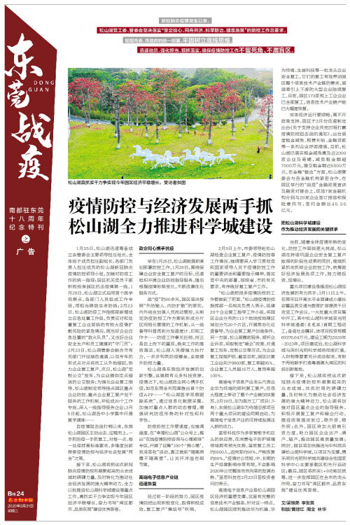 疫情防控与经济发展两手抓 松山湖全力推进科学城建设