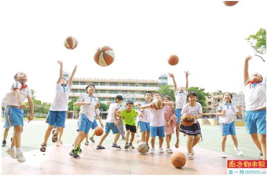 中堂镇第四小学操场上,学生们正在练习手抛篮球回接。抛得越高,越能吸引同学的关注和喝彩。中堂历来是东莞篮球强镇,从校园到民间,篮球基础扎实,气氛浓厚。 南都记者 刘媚 摄