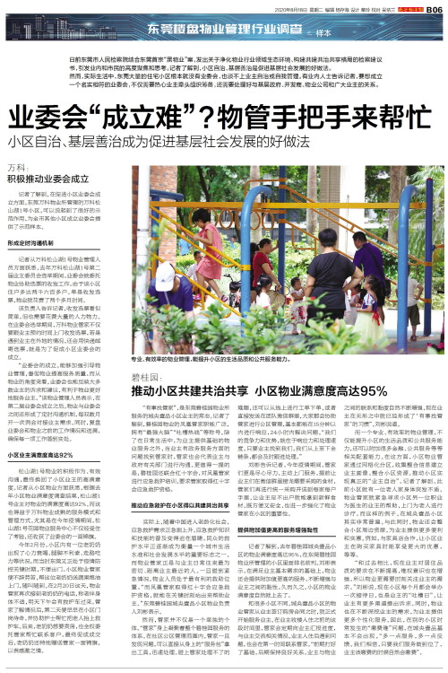 日前东莞市人民检察院结合东莞首宗“黑物业”案,发出关于净化物业行业领域生态环境、构建共建共治共享格局的检察建议书,引发业内和市民的高度聚焦和思考。记者了解到,小区自治、基层善治是促进基层社会发展的好做
