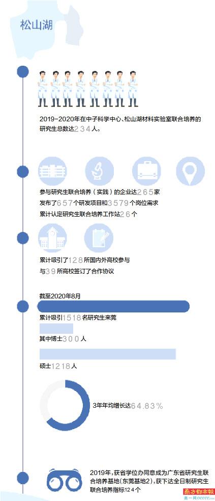 而要布局创新全链条,东莞的源头创新端急需人才的支撑。当前在“三区叠加”的历史性发展机遇下,东莞进一步完善科技创新体系,东莞以散裂中子源大科学装置、松山湖材料实验室为核心,以项目为载体,培养一批科技创新人才,优化研发人才梯队建设。结合东莞名校研究生联合培养项目,东莞通过企业科研课题的技术研发,将不同高校、不同专业的研究生导入研发团队,向中子科学中心、松山湖材料实验室输送了234名来自中国科学院大学、电子科技大学、省内高校等培养单位的联合培养研究生,推进了半导体材料表面界面及器件应用、中国散裂中子源、多功能智能纳米涂料等研发项目。加大源头创新载体人才供给,将是东莞创新驱动接下来的重要工作。
