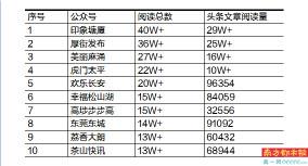 对照9月的前十榜单名单来看,10月的前十名成员没有很大的变动。不过也有新成员加入。其中“高埗步步高”公众号以阅读总数15W+和头条文章阅读量32556排名第7。数据显示,“高埗步步高”公众号是10月受欢迎度负增长数最小,受欢迎度保持得相对稳定的公众号。