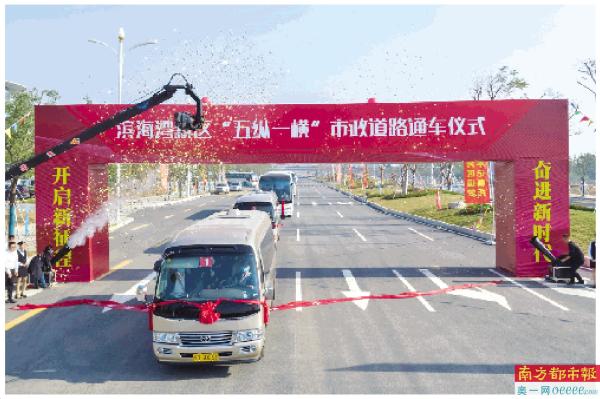 昨天上午,兴海路上,缓缓驶过6辆大巴,象征着滨海湾新区“五纵一横”市政道路正式建成通车。