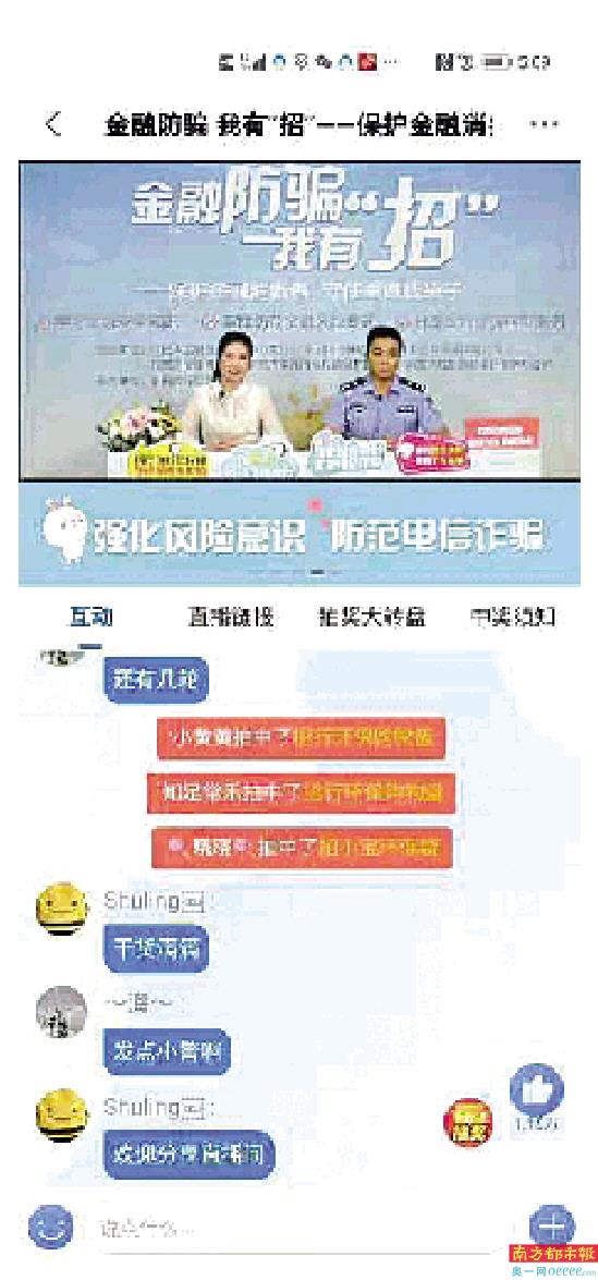 本次直播由招商银行东莞分行金融知识宣讲师张文艳担任主持,特别邀请了东莞市反诈骗中心民警陶义作为嘉宾主持,直播内容围绕“带你了解电信网络诈骗”、“电信网络诈骗的常见手段”、“中招后我们能做些什么?”、“如何防范电信网络诈骗”、“防范电信网络诈骗小贴士”内容,通过以案说险、动画讲解、有奖竞答等喜闻乐见的形式进行。直播间评论区好评如潮,群众纷纷留言:“干货满满”、“很真实的案例,学习了”、“进来学习防诈知识!”等等。
