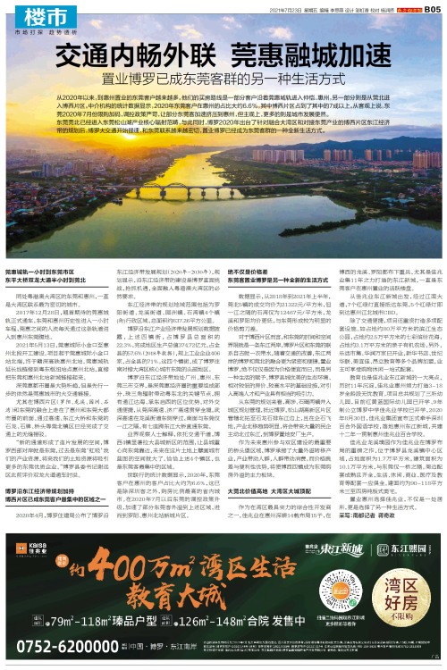 从2020年以来,到惠州置业的东莞客户越来越多。他们的买房路线是一部分客户沿着莞惠城轨进入仲恺、惠州,另一部分则是从莞北进入博西片区。中介机构的统计数据显示,2020年东莞客户在惠州的占比大约6.