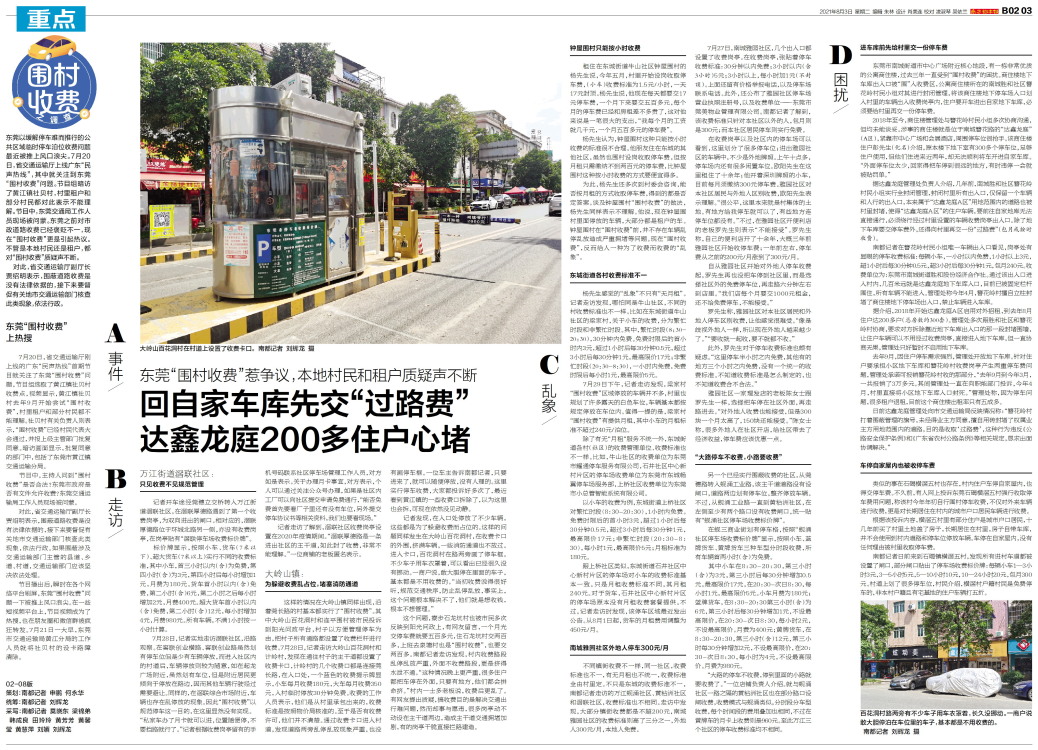 东莞以缓解停车难而推行的公共区域临时停车泊位收费问题最近被推上风口浪尖。7月20日,省交通运输厅上线广东“民声热线”,其中就关注到东莞“围村收费”问题。节目组暗访了黄江镇社贝村,村里租户和部分村民