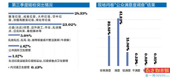 从暗检情况来看,“城市牛皮癣”、乱拉乱挂、内河涌水面保洁有所改善;散落垃圾、占道经营、公共厕所卫生管理问题与上季度相比略有增加。