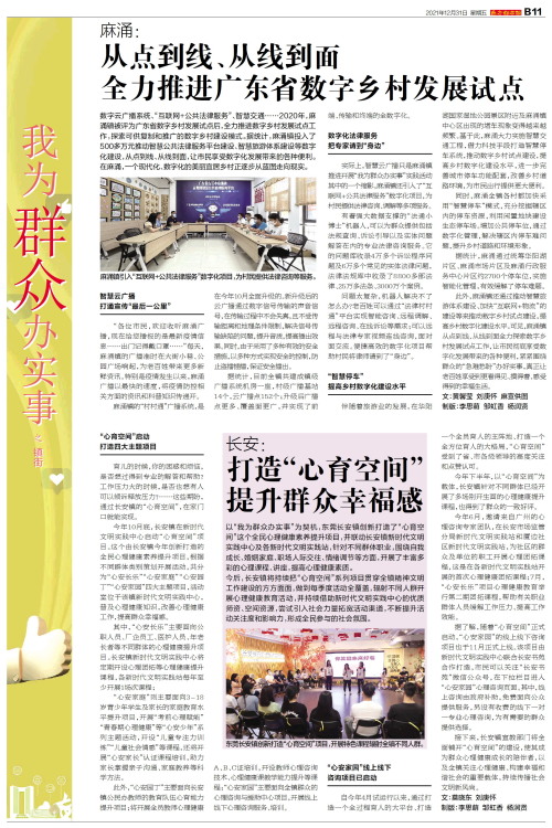 数字云广播系统、“互联网+公共法律服务”、智慧交通……2020年,麻涌镇被评为广东省数字乡村发展试点后,全力推进数字乡村发展试点工作,探索可供复制和推广的数字乡村建设模式。据统计,麻涌镇投入了50