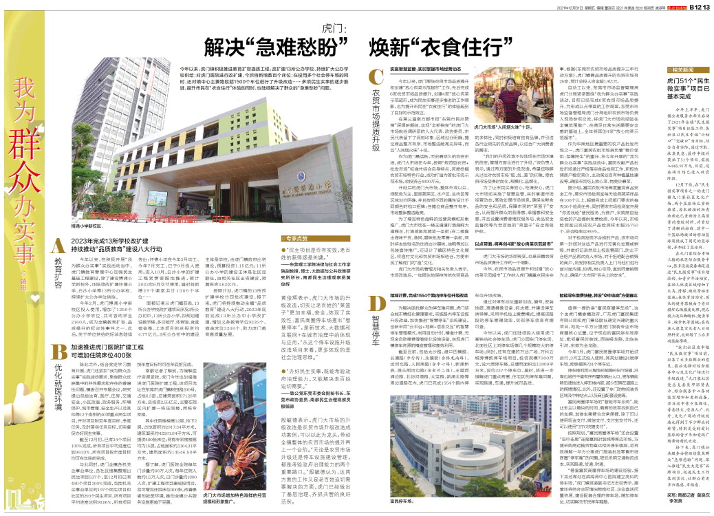镇街 今年以来,虎门镇积极推进教育扩容提质工程,改扩建13所公办学校、持续扩大公办学校供给;对虎门医院进行改扩建,今后将新增数百个床位;在投用多个社会停车场的同时,还对镇中心主要路段超1500个