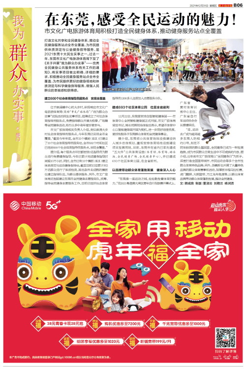 打造文化共享和全民健身体系,推动全民健身服务站点全市全覆盖,为市民提供体质测定与公益健身指导服务,是2021东莞十大民生实事之一。过去一年,东莞市文化广电旅游体育局下发了《关于开展“我为群众办实事