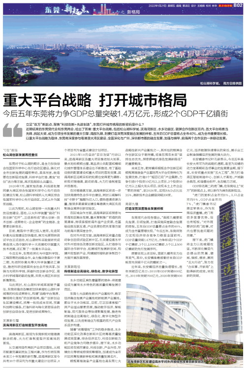 立足“双万”新起点,聚焦“科技创新+先进制造”,东莞打开城市格局的新密码是什么?近期结束的东莞党代会和东莞两会,给出了答案:重大平台战略。包括松山湖科学城、滨海湾新区、水乡功能区、银屏合作创新区在