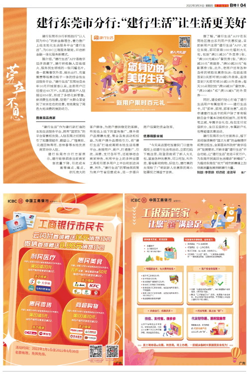 建行东莞市分行积极践行“以人民为中心”的新金融理念,着力推广上线本地化生活服务平台“建行生活”,为GBC三端服务赋能,开启新金融一体化服务新模式。 据介绍,“建行生活”APP是数字经济浪潮下,建