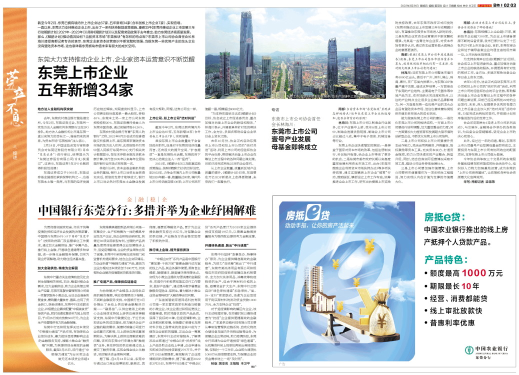 为贯彻落实国家和省、市关于统筹疫情防控和经济社会发展的决策部署,中国银行东莞分行(以下简称“东莞中行”)按照政府部门及监管单位工作要求,通过加大金融供给、推广专属产品、推行线上金融、开通绿色通道等