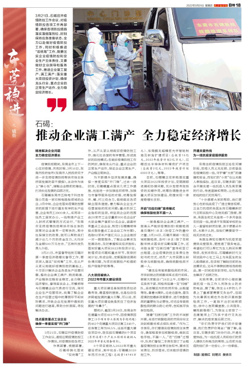 东莞稳进之镇街 3月21日,石碣召开疫情防控工作会议,对疫情防控各项工作再部署,确保各项防控措施落实落细落到位,时刻保持应急准备状态,全力以赴做好疫情防控工作,同时积极推进“双统筹”工作,既要压