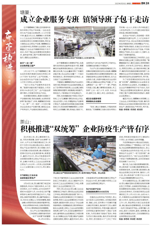 积极推进“双统筹” 企业防疫生产皆有序