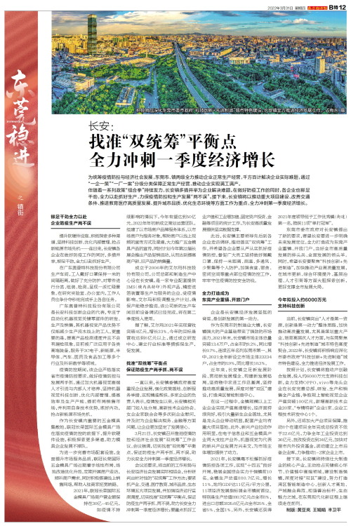 镇街 为统筹疫情防控与经济社会发展,东莞市、镇两级全力推动企业正常生产经营,千方百计解决企业实际难题,通过“一企一策”“一厂一案”分级分类保障正常生产经营,推动企业实现满工满产。伴随着一系列政