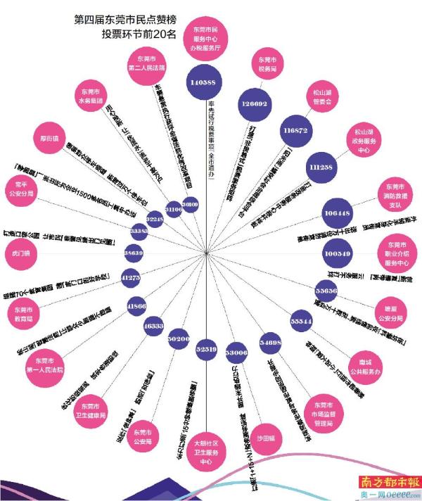 2021年11月,第三届南方都市报“东莞市民点赞榜”启动。本届以“我为群众办实事”为主题,面向全市各级党政机关、企事业单位、社会团体征集2021年以来的优秀案例。截至12月3日中午12点投票结束,榜单上线7天,80个案例投票总数达到3335896票(投票数由往届每人每天1票改为每人每天10票),投票总人数为241814人。