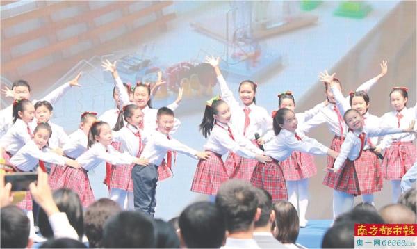 “我们用科学点亮未来,揭开宇宙神秘的面纱……”为全面激发学生爱科学、学科学、讲科学、用科学的热情,用歌曲传唱的方式在青少年学生心中播下科技创新的种子,培养中小学生的创新意识和科学精神,东莞市中小学科学教育主题歌《科学点亮未来》也在启动仪式上正式发布,莞城中心小学学子以歌舞形式进行了精彩演绎。