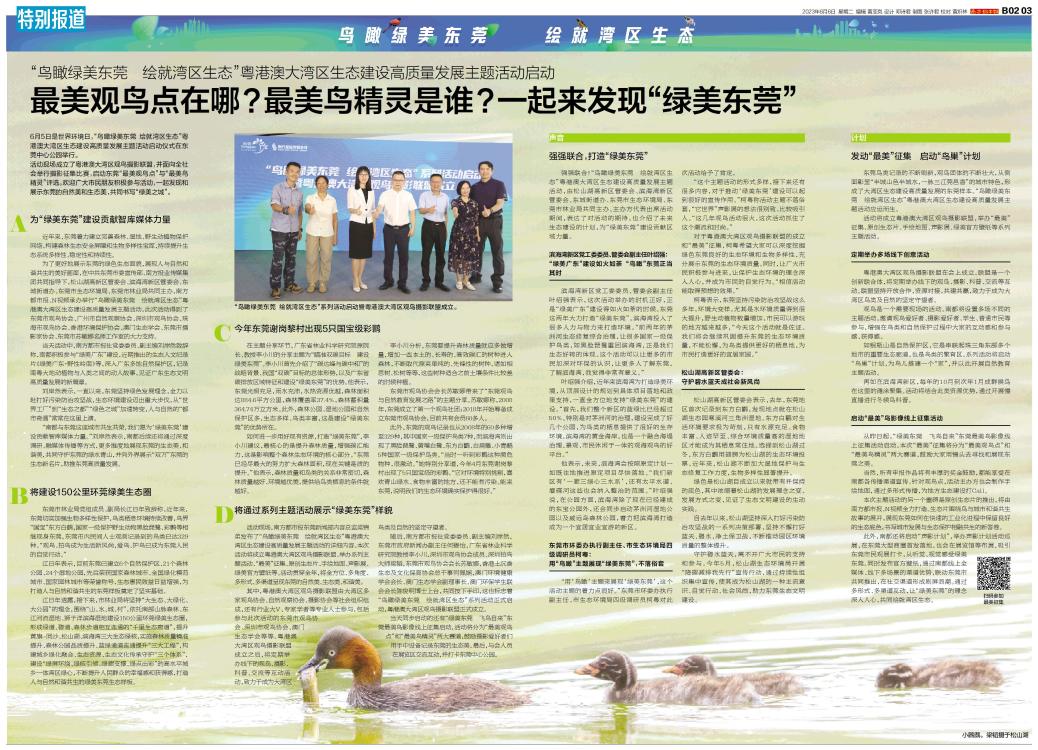 6月5日是世界环境日,“鸟瞰绿美东莞 绘就湾区生态”粤港澳大湾区生态建设高质量发展主题活动启动仪式在东莞中心公园举行。 活动现场成立了粤港澳大湾区观鸟摄影联盟,并面向全社会举行摄影征集比赛,启动