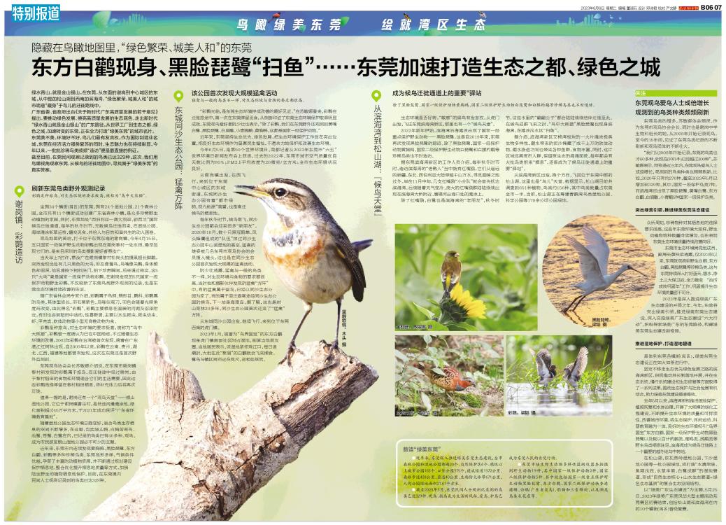东方白鹳现身、黑脸琵鹭“扫鱼”……东莞加速打造生态之都、绿色之城