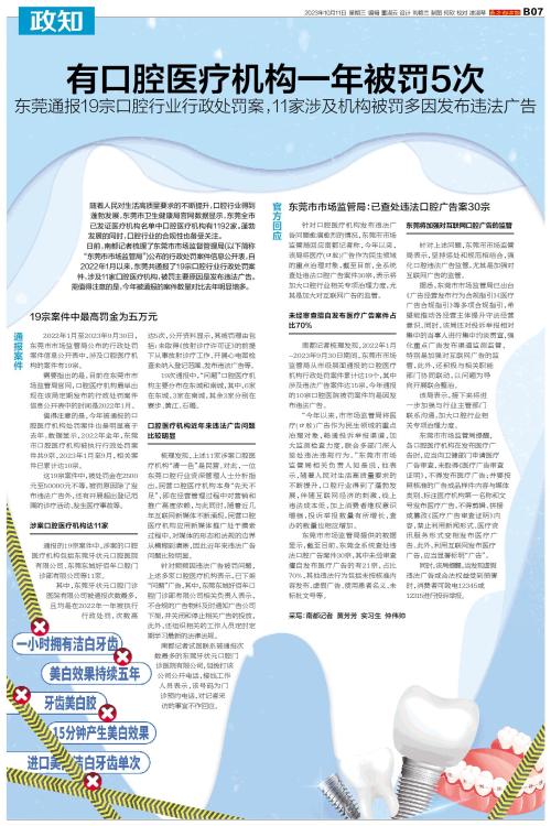 随着人民对生活高质量要求的不断提升,口腔行业得到蓬勃发展,东莞市卫生健康局官网数据显示,东莞全市已发证医疗机构名单中口腔医疗机构有1192家。蓬勃发展的同时,口腔行业的合规性也备受关注。 日前,