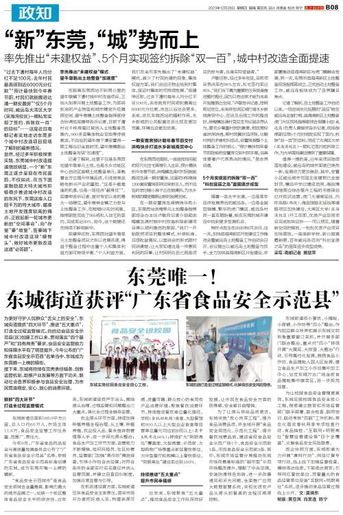 东莞唯一!东城街道获评“广东省食品安全示范县”
