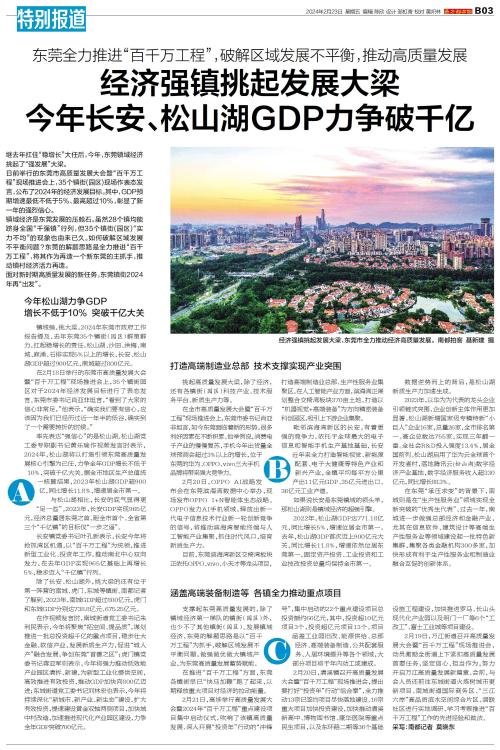 经济强镇挑起发展大梁 今年长安、松山湖GDP力争破千亿